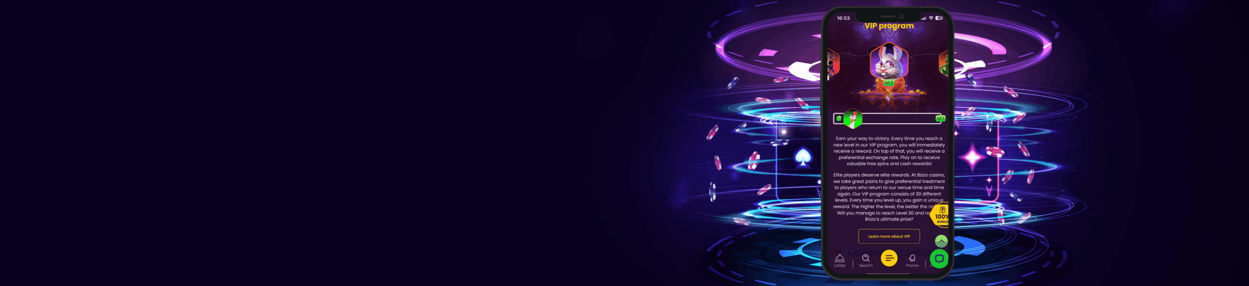 - Application incentive: Any person that sets up the Bizzo application on their smart device will certainly be awarded with 10 free rotates without a down payment.